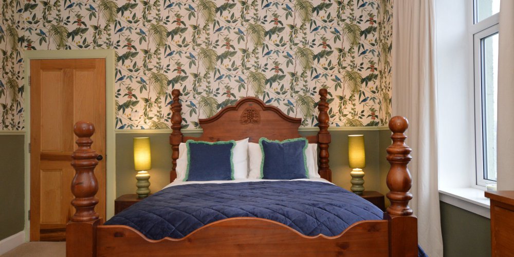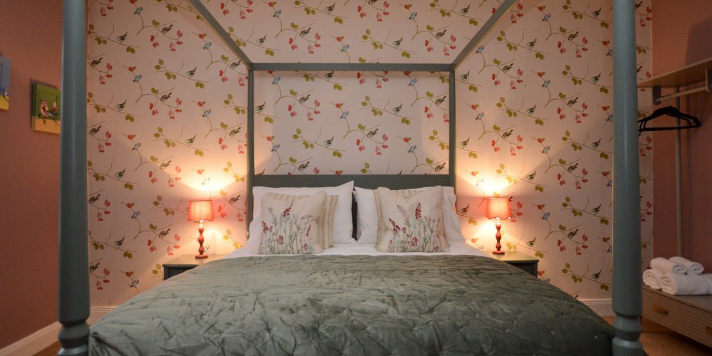 Bedrooms: Every bedroom has its own personality, furnished with unique charm and colour. Ideal for families and groups, featuring four generous bedrooms over two levels, including a romantic four‑poster room, and a spacious Master with a child‑friendly single.