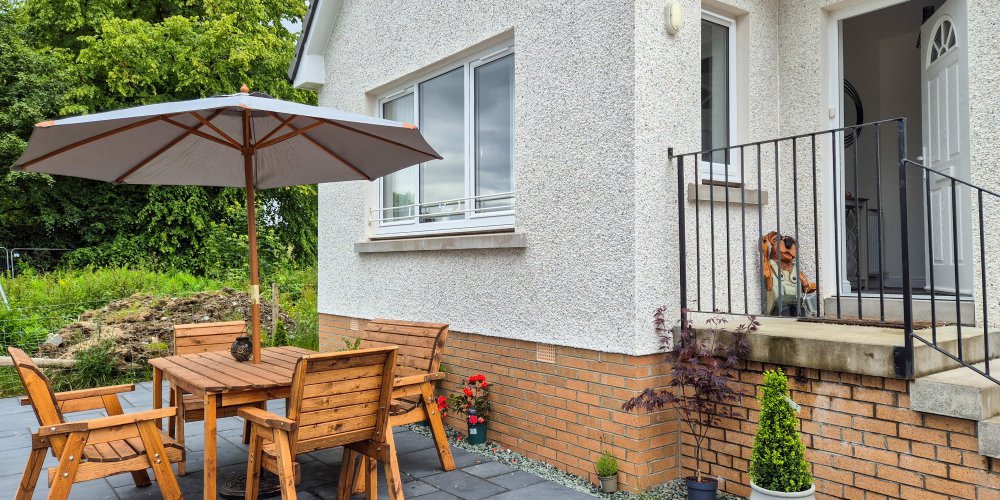 Lochgilphead is an ideal place to stay to visit all the prehistoric sites in and around Kilmartin. It also has a Co-Op, Tesco at the petrol station and a Morrisons local on the main street. There is a fish and chip shop, a Chinese and some cafes. The house has all mod cons, washing machine and tumble dryer. The master bedroom has an en-suite and a very comfortable king-size bed. Using the wet room shower means that anyone wanting to use the toilet is paddling to get to it for the rest of the day! As we were a couple we never used it again. There is access for the disabled via a ramp to the back door and the light switches and plugs are at the appropriate height for a wheelchair user. All the windows have blinds except the sitting room which requires one for privacy and to keep the heat out. The house is well-insulated as it is heated by a heat pump. The main drawback of the house is that it is very overlooked. If you are out all day, like we were, it is not too much of a problem. The owners have put a picnic table at the front for slightly more privacy. The house is in a quiet, residential area with no traffic noise.