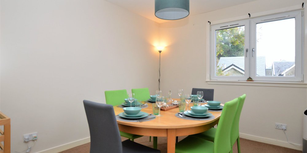 The well equipped kitchen is spacious and modern with a breakfast bar, a range master electric/gas cooker and hob, microwave, fridge and freezer. The region has an abundance of fresh produce on it's doorstep to encourage guests to experience delicious local foods. Adjacent to the kitchen is the dining room with a dining table seating up to six persons. High chair available.