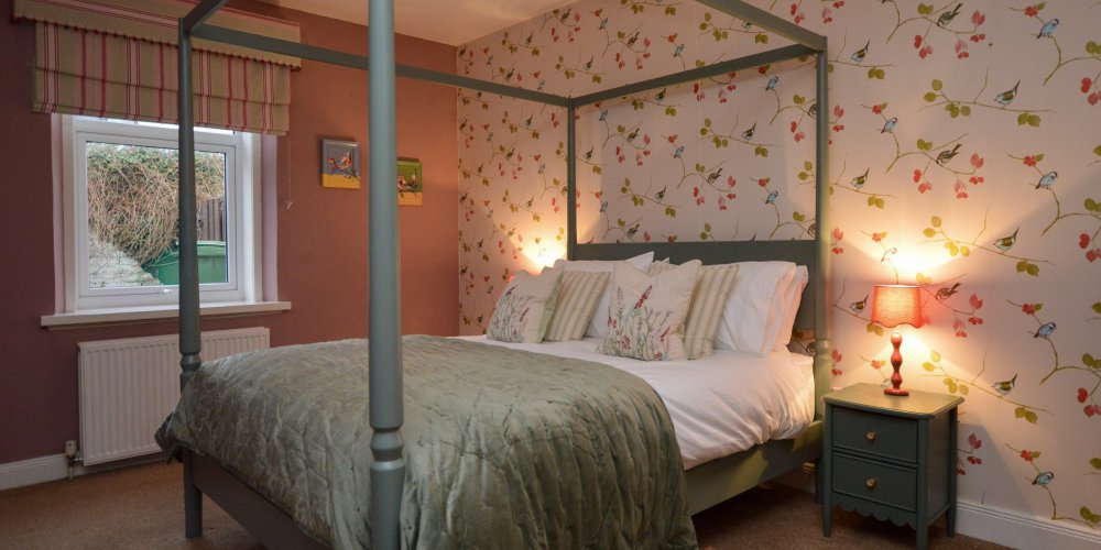 Bedrooms: Every bedroom has its own personality, furnished with unique charm and colour. Ideal for families and groups, featuring four generous bedrooms over two levels, including a romantic four‑poster room, and a spacious Master with a child‑friendly single.