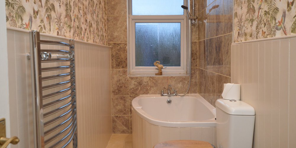 Large Family Bathroom - Jacuzzi bath, double shower cubicle, toilet.