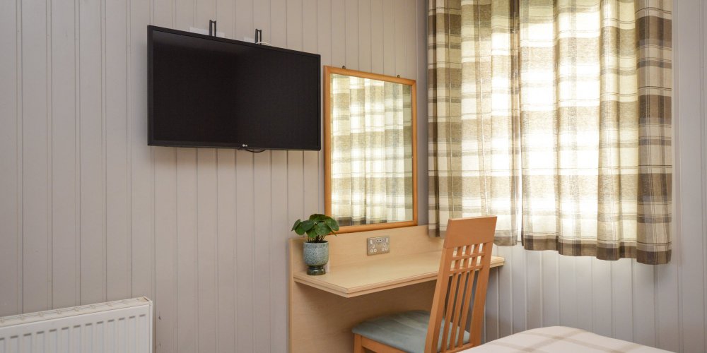 - Double Bedroom: Comfortable double bed, Smart TV and en‑suite bathroom, with shower cubicle.