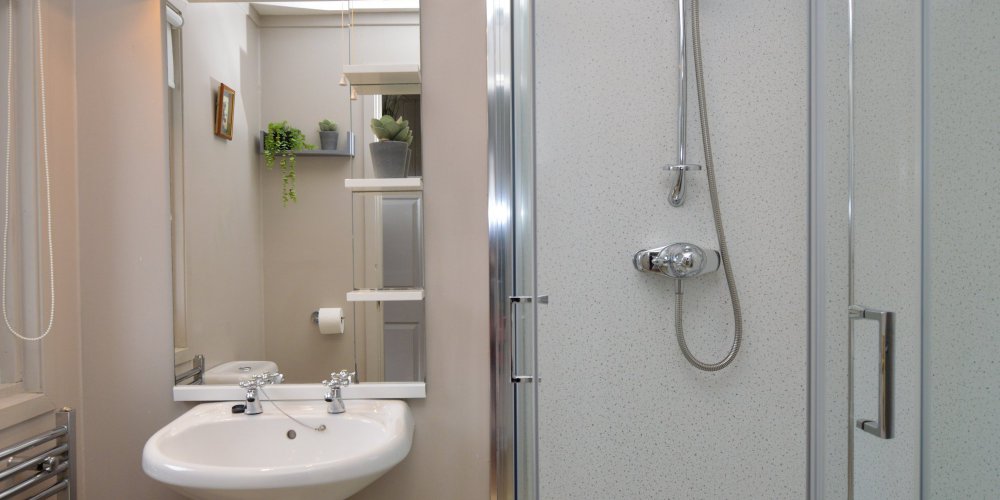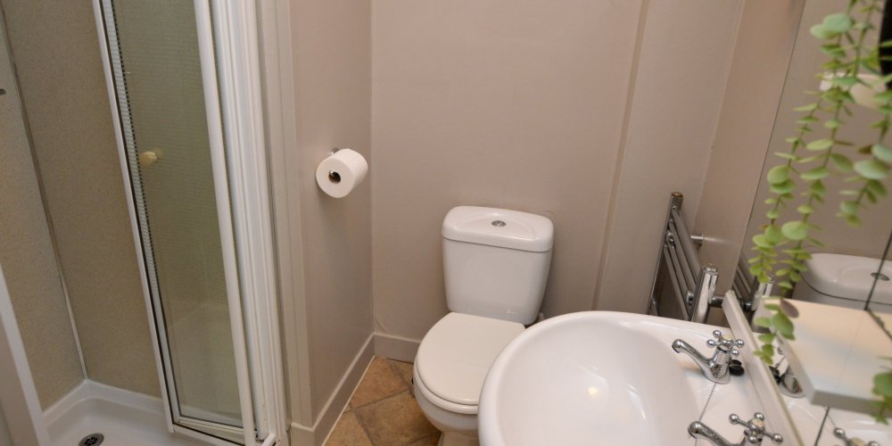 Bathrooms: Family bathroom with shower cubicle, hand basin and toilet. En‑suite bathroom from the double bedroom.