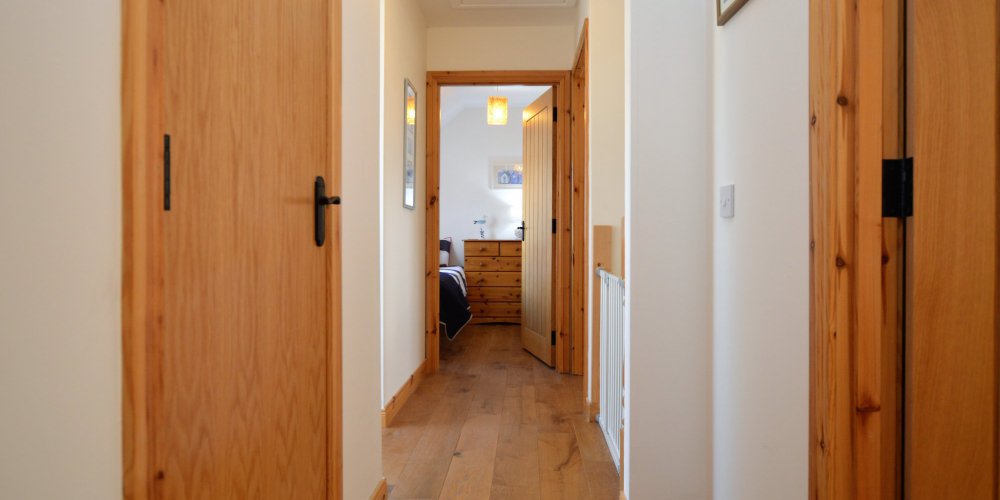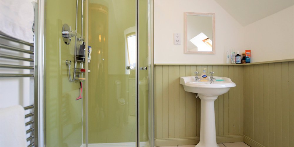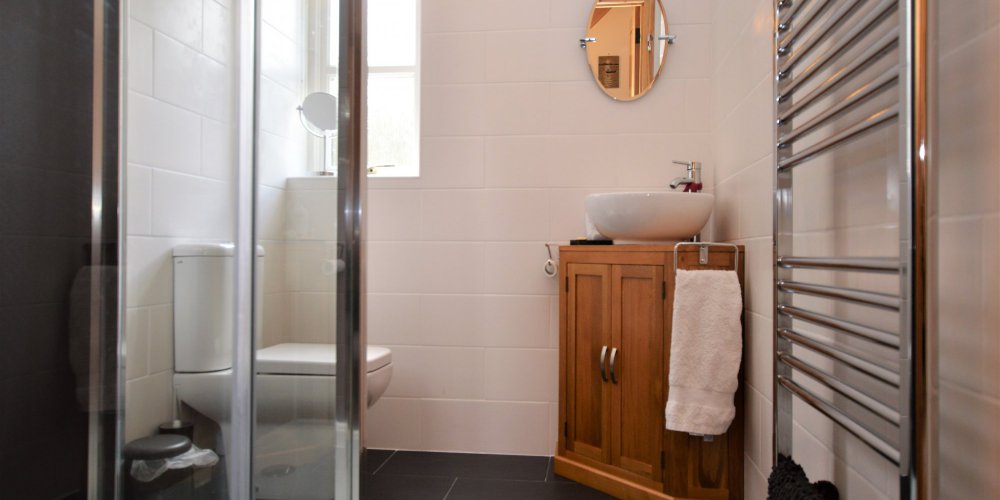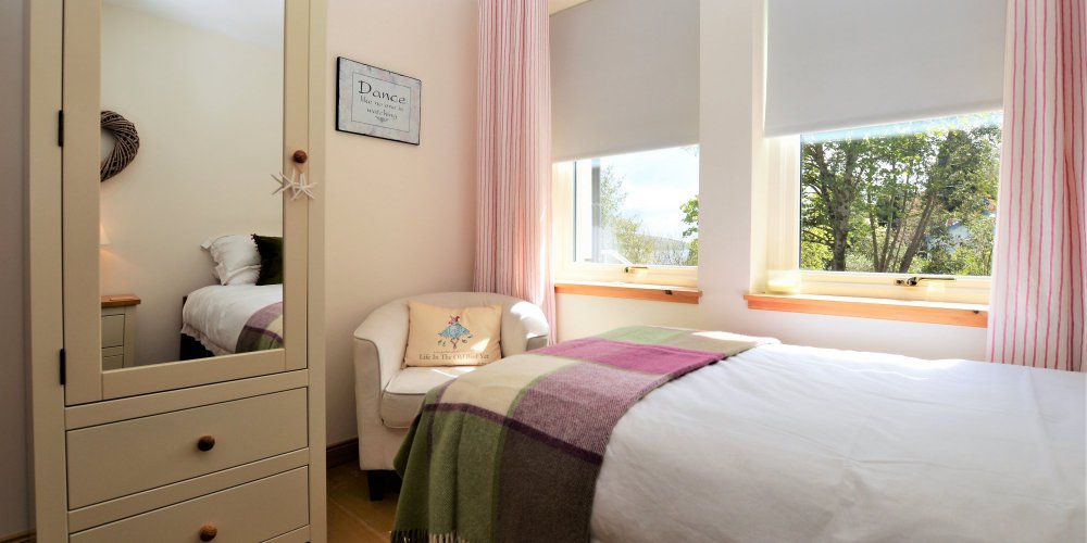 There is a twin bedroom on the ground floor with a shared family bathroom. Upstairs there are two beautifully appointed double bedrooms and a twin bedroom, all with quality furnishings and bed linen. Travel cot available.