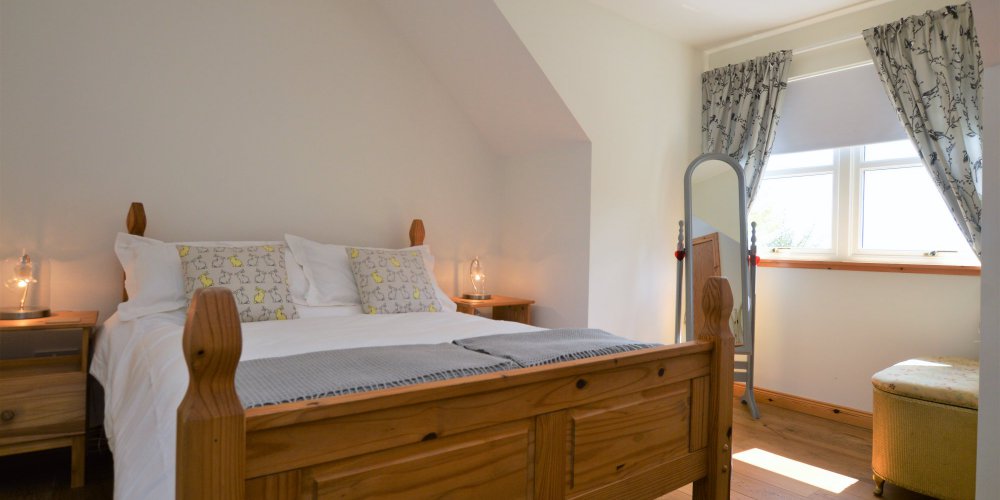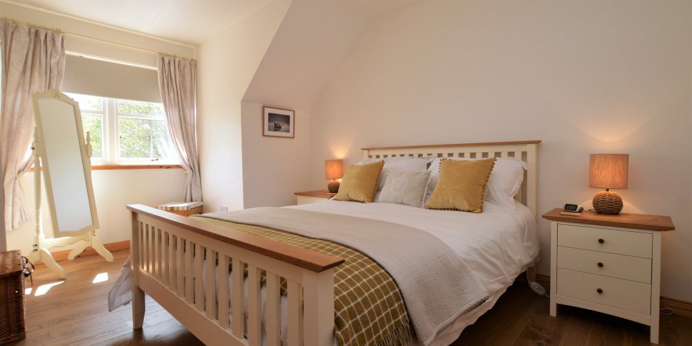 Bedroom 2: Upstairs double bed, wardrobe, bedside tables