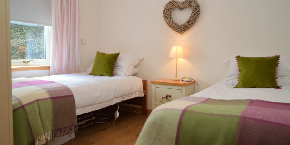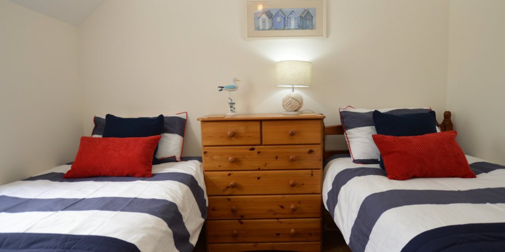 Bedroom 3: Upstairs twin bedroom, wardrobe, bedside tables