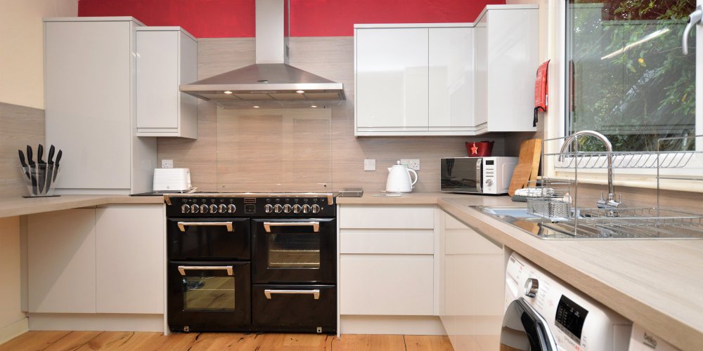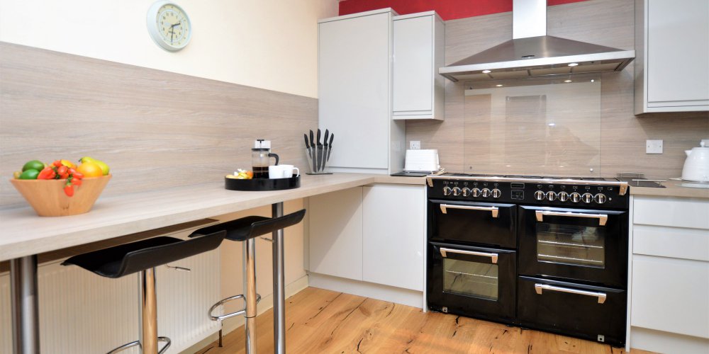 The well equipped kitchen is spacious and modern with a breakfast bar, a range master electric/gas cooker and hob, microwave, fridge and freezer. The region has an abundance of fresh produce on it's doorstep to encourage guests to experience delicious local foods. Adjacent to the kitchen is the dining room with a dining table seating up to six persons. High chair available.