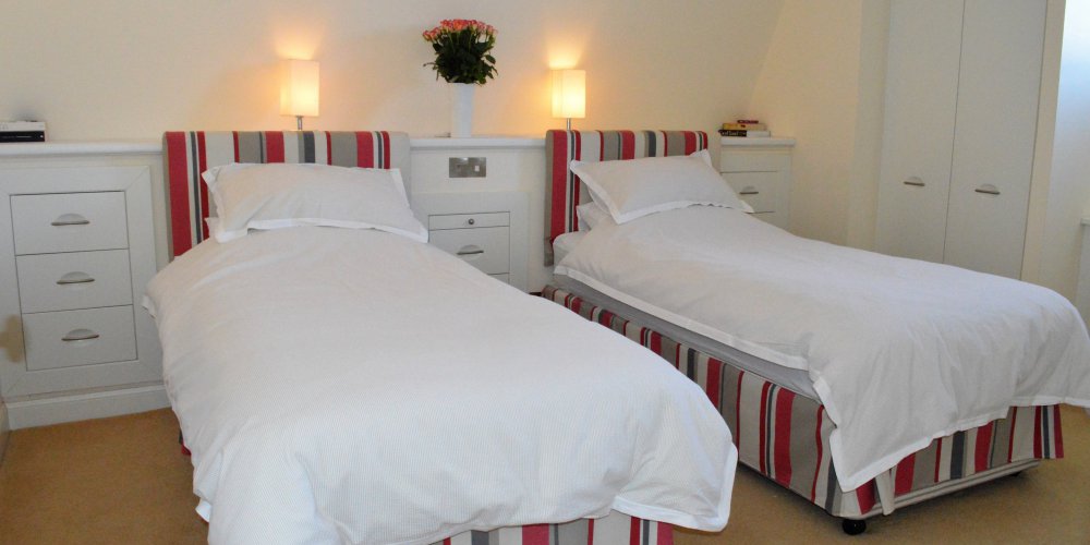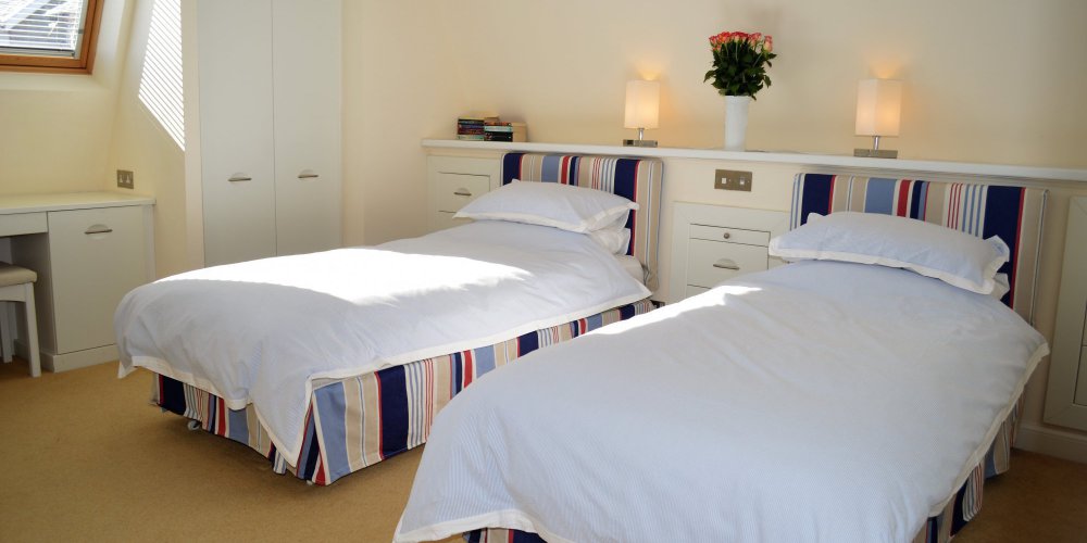 Bedroom 4: With twin beds, Velux windows and en-suite with shower over bath, and toilet.